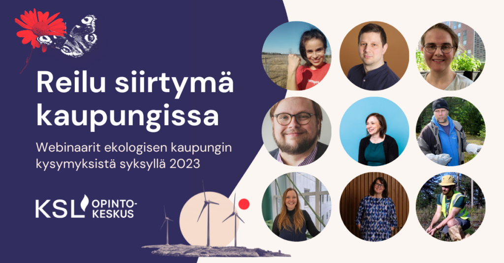 Reilun siirtymän webinaareissa syksyllä 2023 tarkastellaan kaupunkia reilun siirtymän paikkana. Kun valtaosa suomalaisista asuu ja elää kaupungeissa, on kaupungeissa ratkottava myös yhä useammat kestävän tulevaisuuden kysymykset.